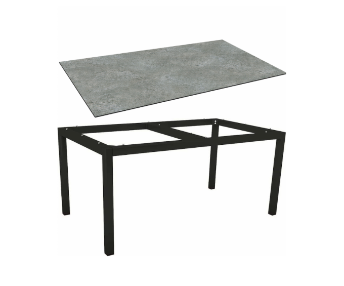 Table de jardin 6 personnes 160x90 cm – Aluminium Noir Mat & plateau HPL Silverstar Flint