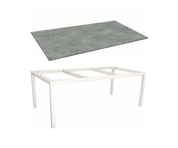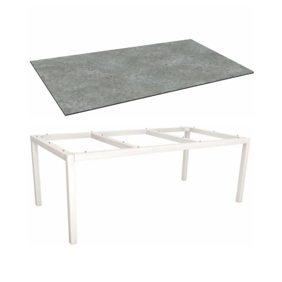 Table de jardin 8 personnes 200x100 cm – Aluminium blanc & plateau HPL Silverstar Flint