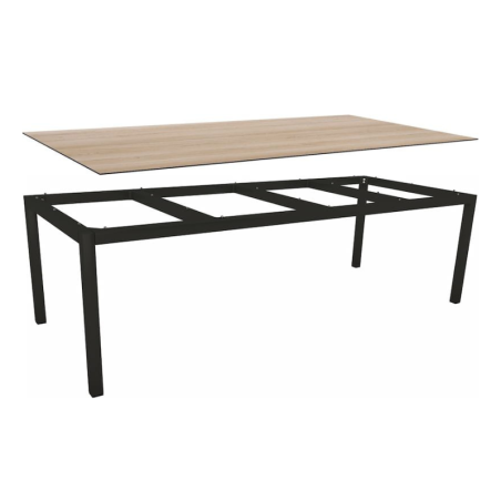 Table 10 personnes en Aluminium Noir Mat avec Plateau HPL Oak Light