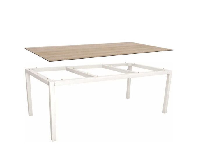 Table de jardin 8 personnes 200x100 cm – Aluminium blanc & plateau HPL Silverstar Oak Light