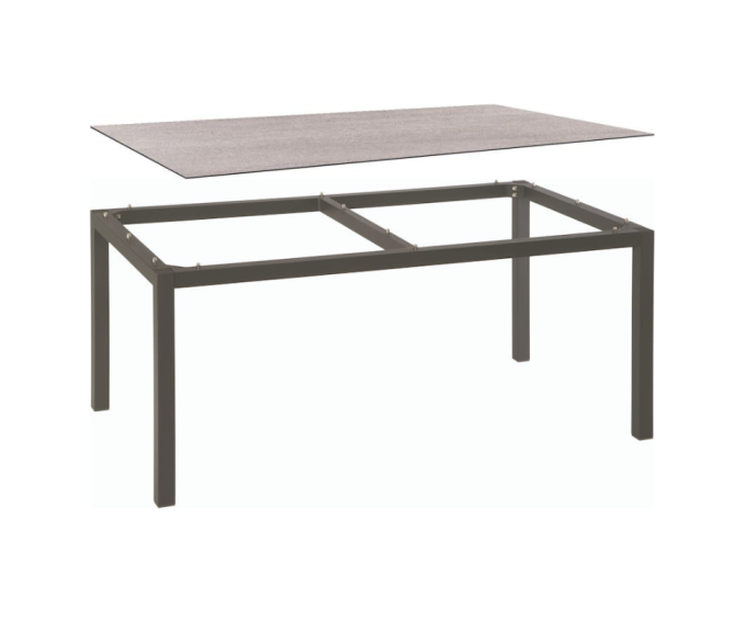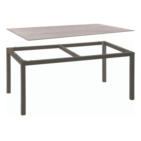 Table de jardin 6 personnes 160x90 cm – Aluminium anthracite & plateau HPL Silverstar Stone Light