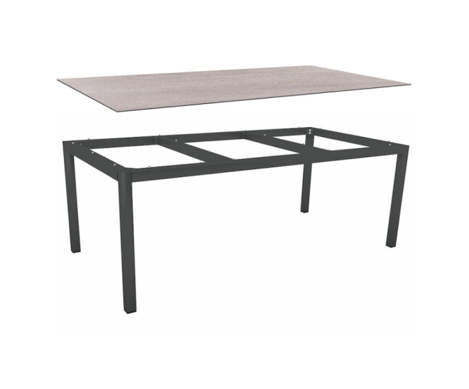 Table de jardin 8 personnes 200x100 cm – Aluminium anthracite & plateau HPL Silverstar Stone Light