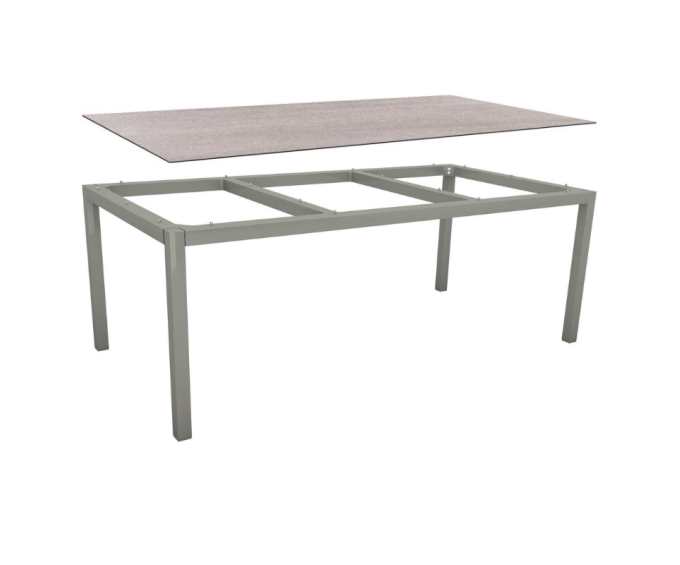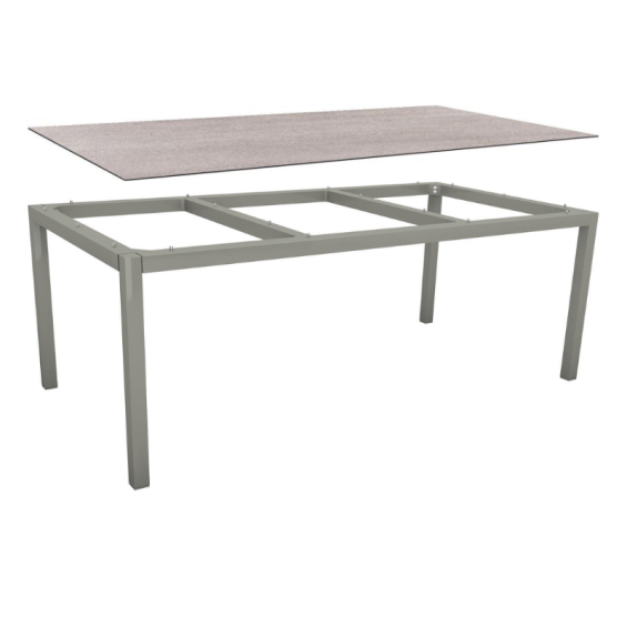 Table de jardin 8 personnes 200x100 cm – Aluminium graphite & plateau HPL Silverstar Stone Light
