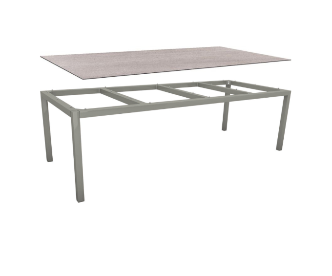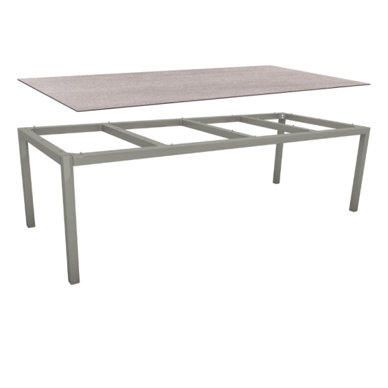 Table de jardin 10 personnes 250x100 cm – Aluminium graphite & plateau HPL Silverstar Stone Light