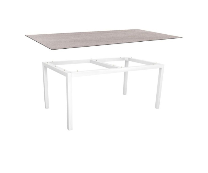Table de jardin 6 personnes 160x90 cm – Aluminium blanc & plateau HPL Silverstar Stone Light