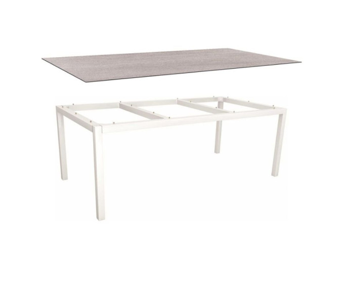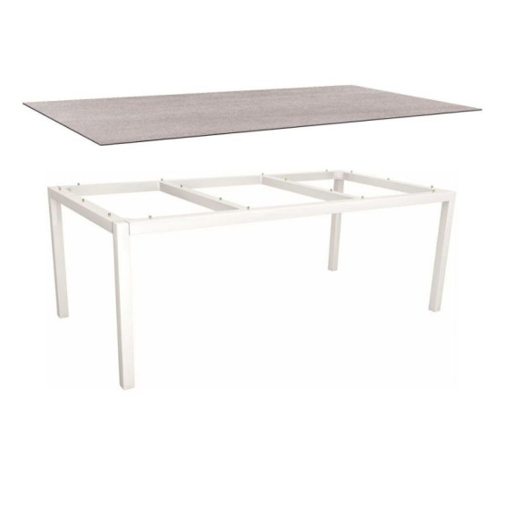 Table de jardin 8 personnes 200x100 cm – Aluminium blanc & plateau HPL Silverstar Stone Light