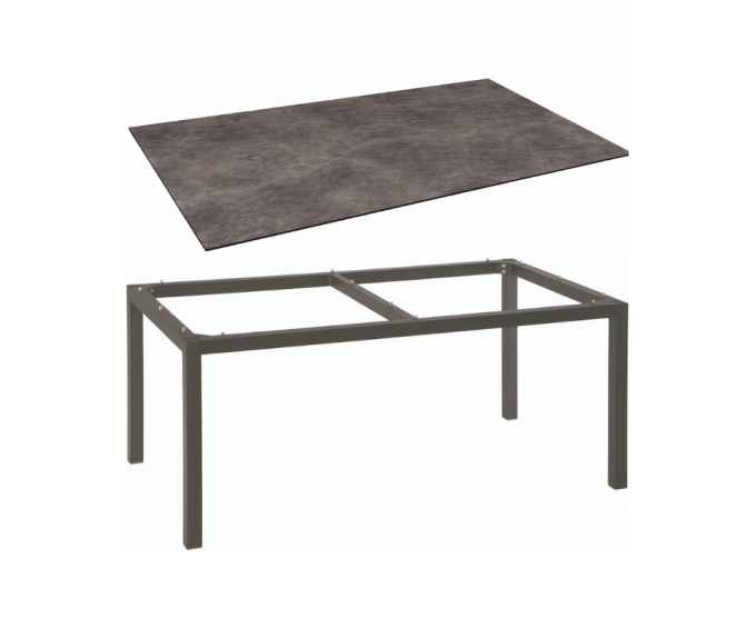 Table de jardin 6 personnes 160x90 cm – Aluminium anthracite & plateau HPL Silverstar Stone