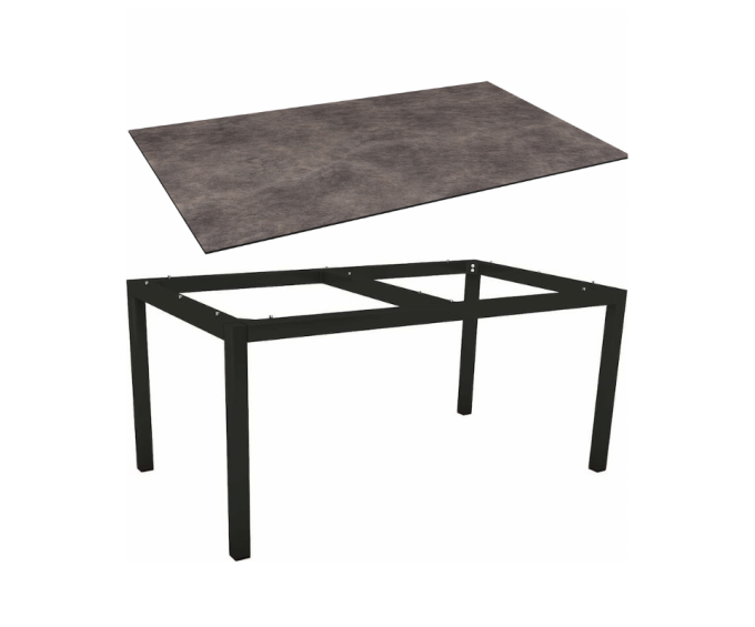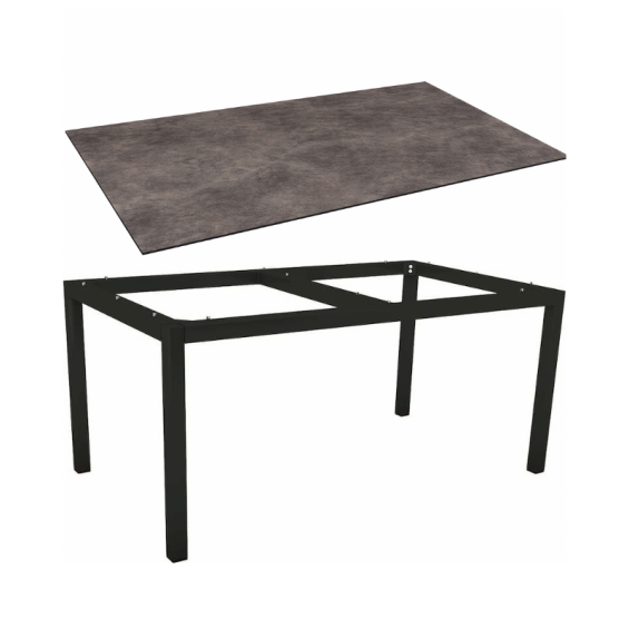 Table de jardin 6 personnes 160x90 cm – Aluminium noir mat & plateau HPL Silverstar Stone