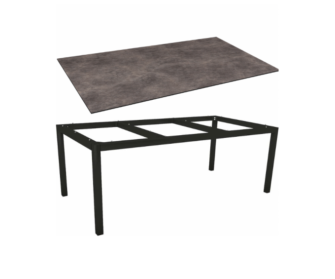 Table de jardin 8 personnes 200x100 cm – Aluminium noir mat & plateau HPL Silverstar Stone