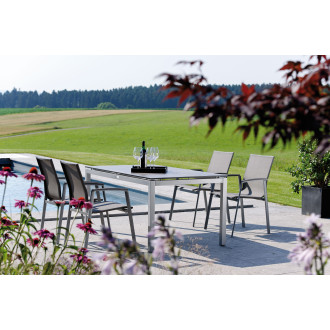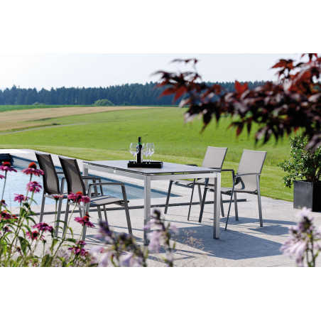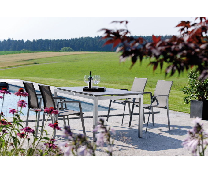 8 fauteuils LEVANTO aluminium graphite – textilène gris argent