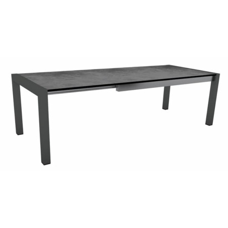 Ensemble table ext. 174 à 254 cm Noir mat/Ciment + 8 chaises NILS