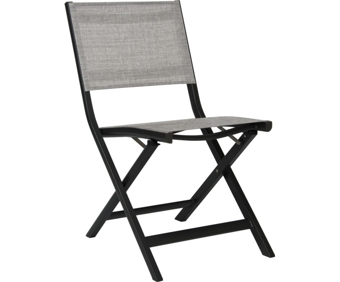 8 chaises pliantes NILS aluminium noir mat – textilène gris lin