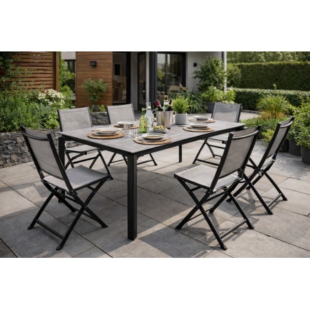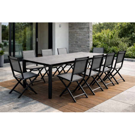 Ensemble table PENTA 220 Noir mat/HPL Slate Stone + 8 chaises NILS